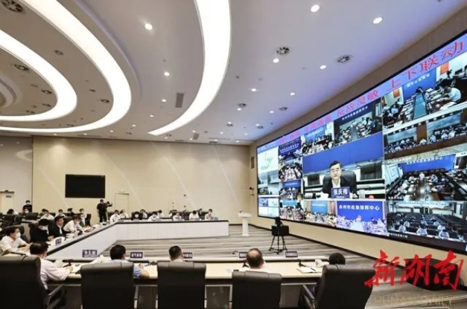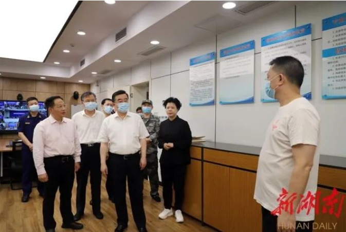 (6月5日,张庆伟在省应急指挥中心,调度部署防汛救灾工作。以上图片均由湖南日报全媒体记者 唐俊 摄)